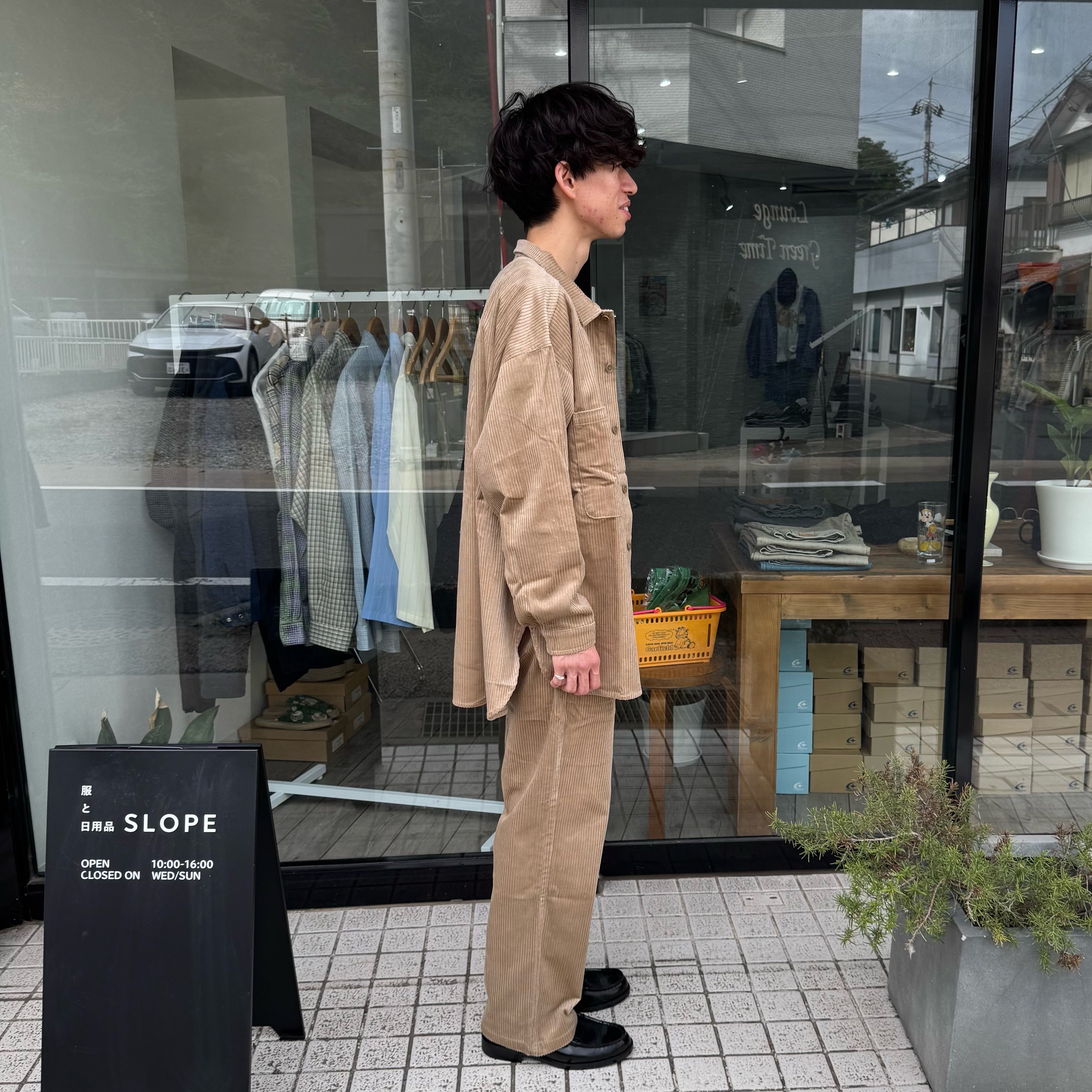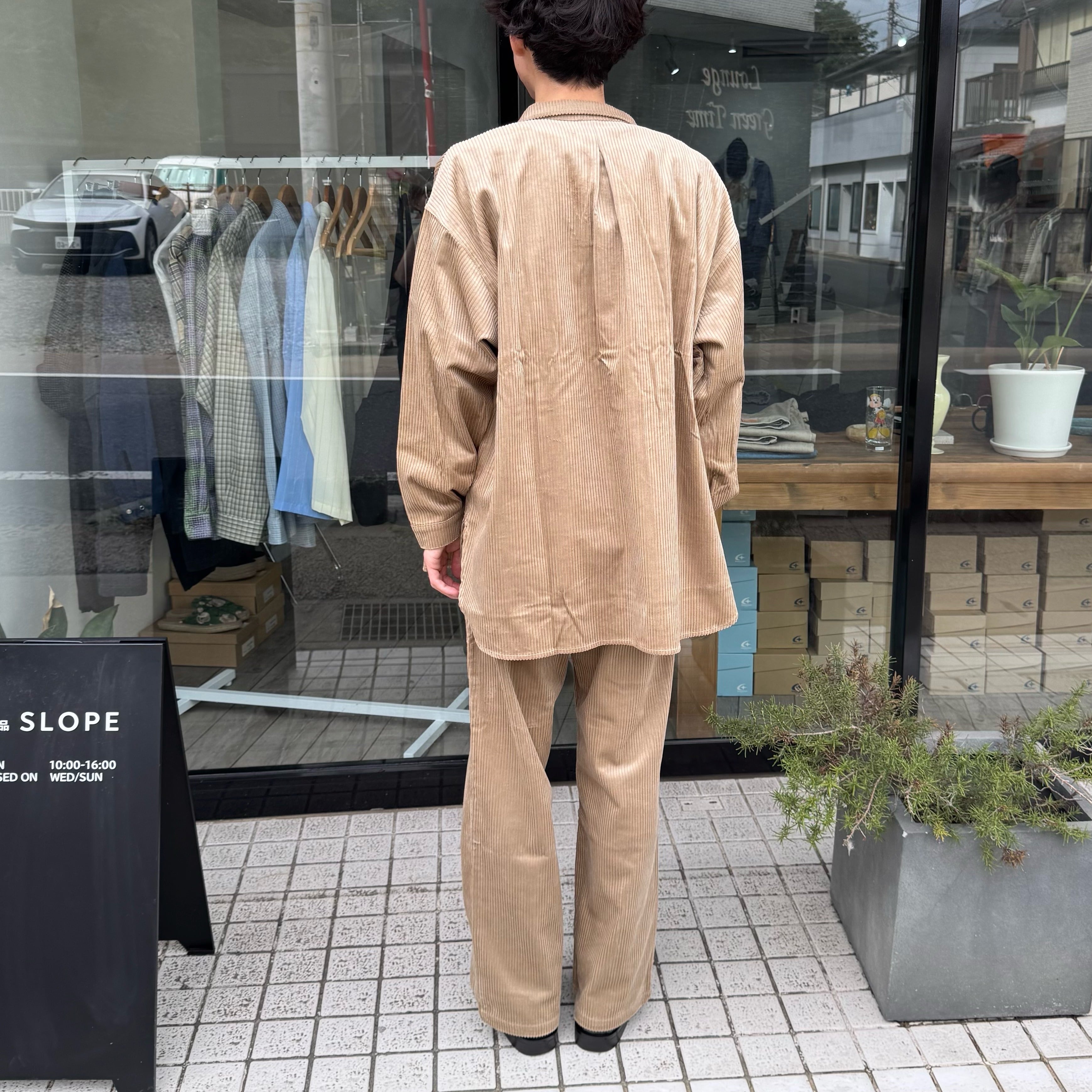 ワーク感漂う、光沢のある太畝コーデュロイのユニセックスなぺインターシャツ。