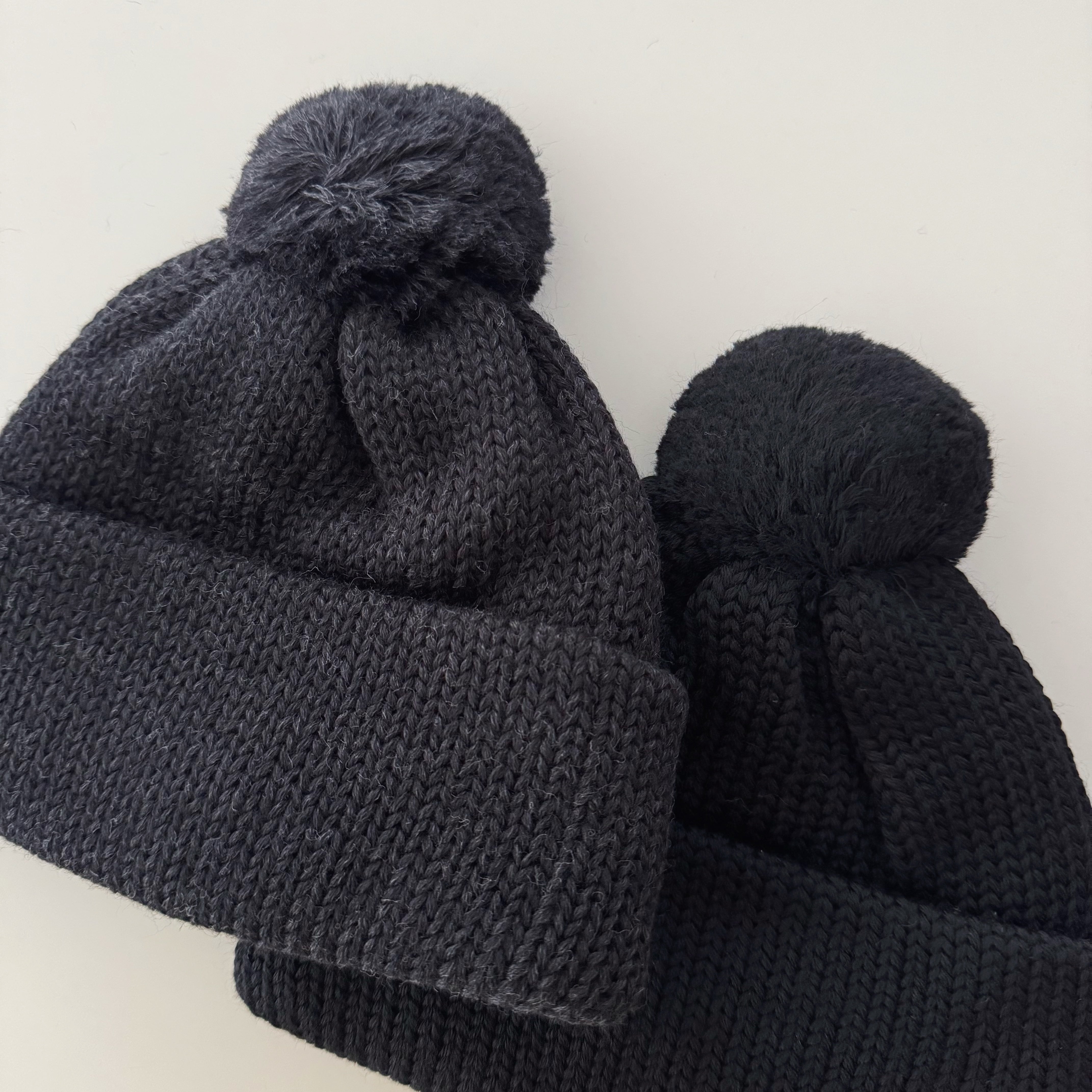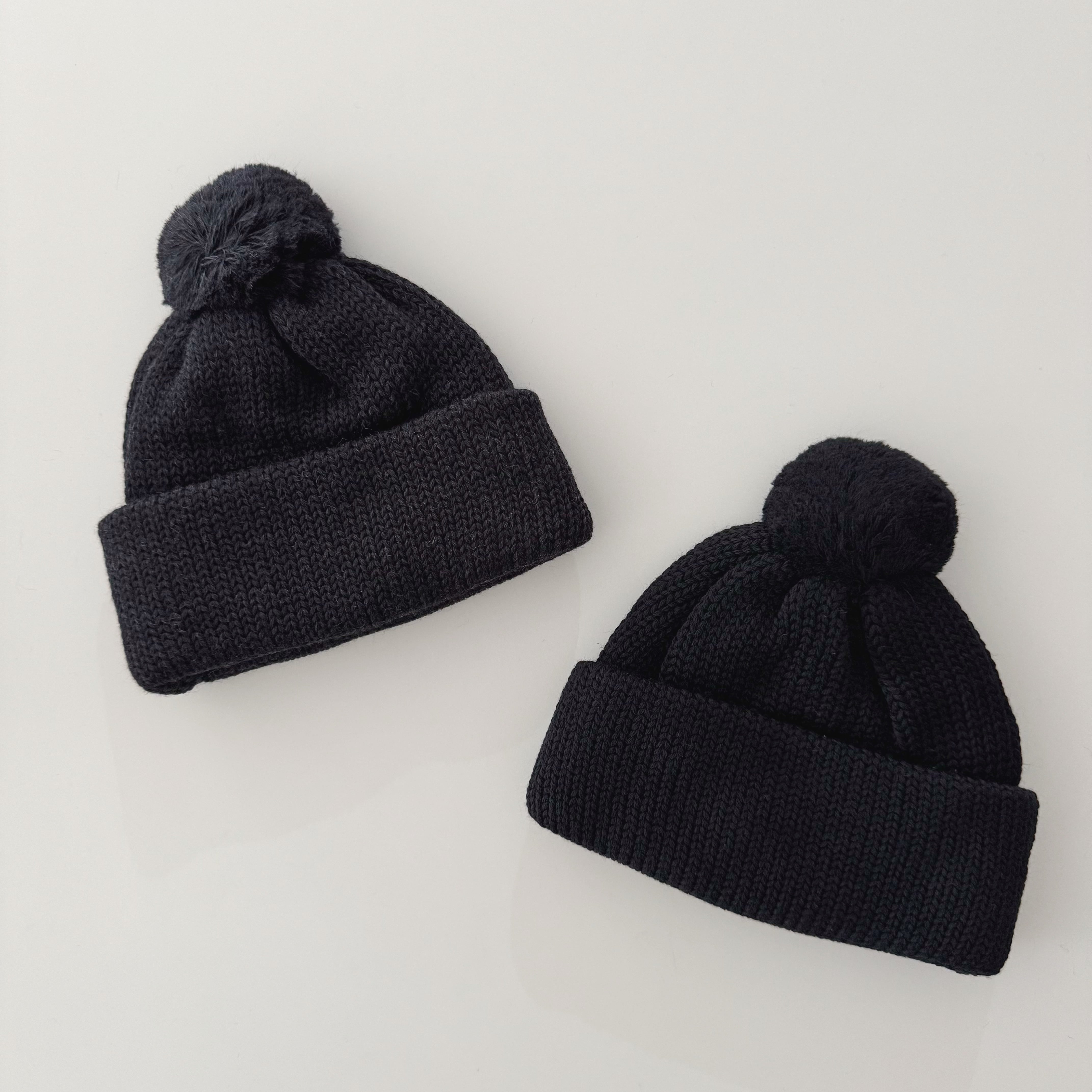 メリノウール3ゲージ袋編みのスタンダードニット梵天付きニット。