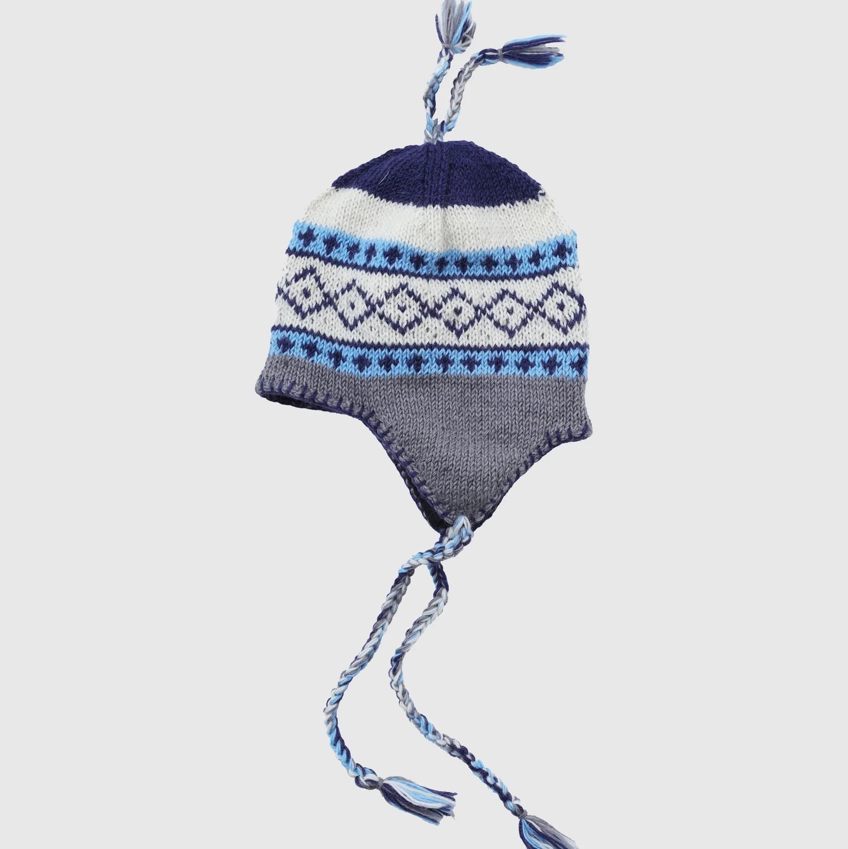 「ネパールで手編みして作ってもらった耳当て付きのニットキャップです。あったかそうな太番手のウールで、裏地にはフリースが付きます。耳あての下から出ている三つ編みが気に入ってます。民族調の柄2色と無地の展開。」