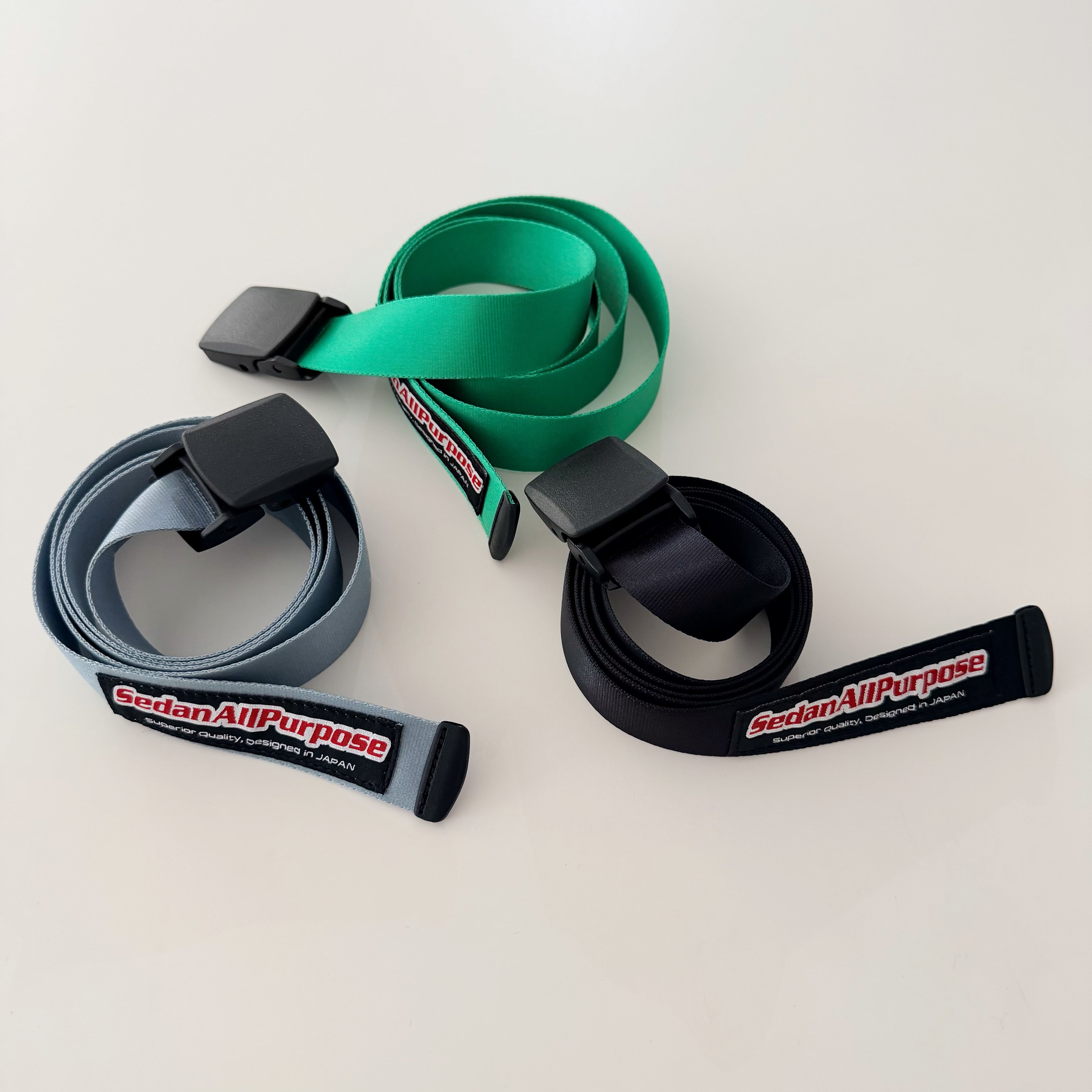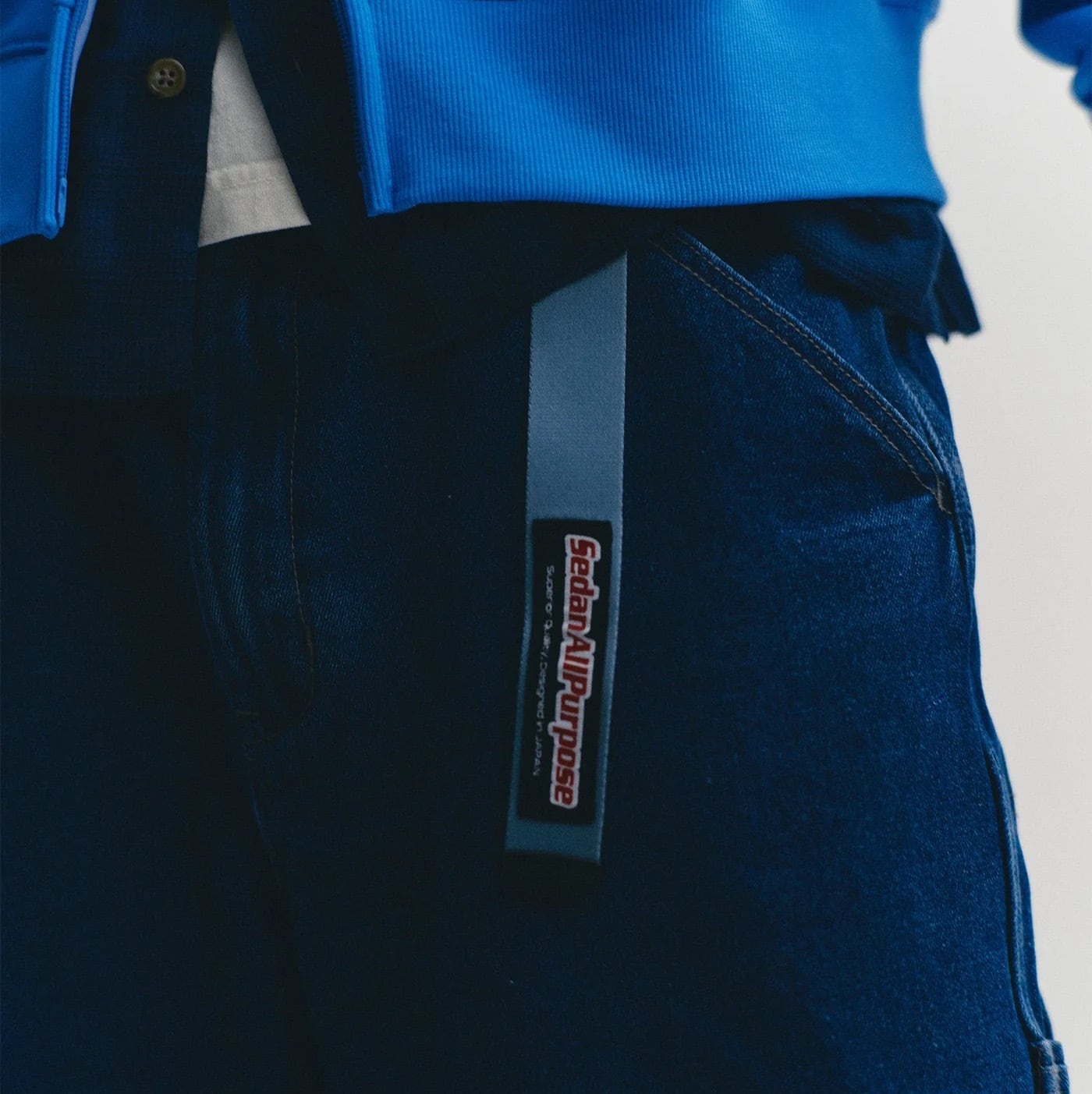 「それまでのイメージを刷新するためか、HIP HOPやグラフィティの影響を受けたのか、90年代後半から00年代前半にSurf&Skate系のロゴが変わっていった時代がある。そんな時代をイメージして作ったセダンのスケートロゴ。そのロゴが垂れ下がったテープに鎮座するナイロンベルトを作った。アウトドアブランドが作りそうなナイロンベルトだけども、デニムからスラックスまでいろんなスタイルの味付けに使って欲しいので、カラーもいっぱい作りました。ちょっと太めの30mm幅ベルトが今の気分です。」