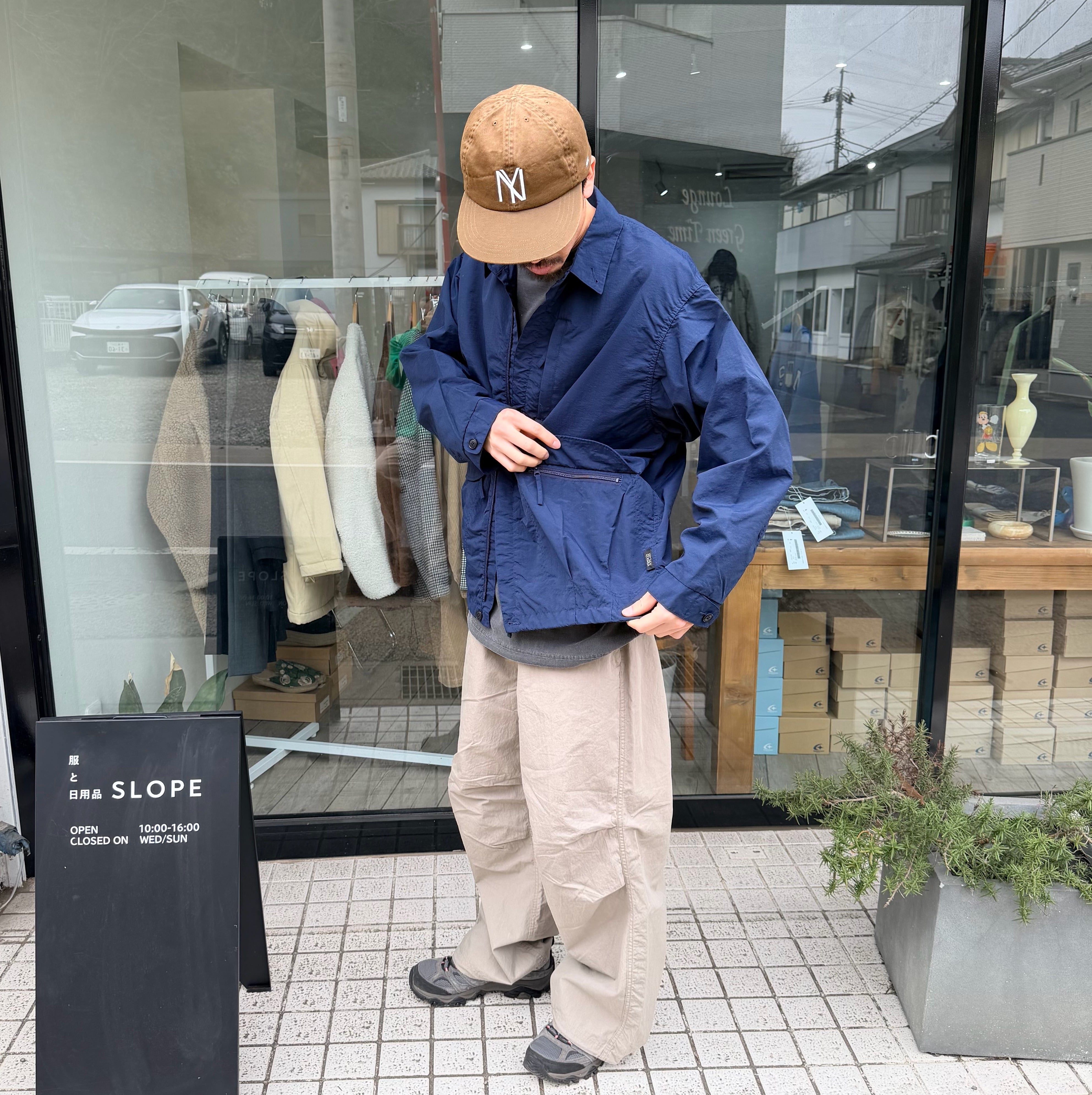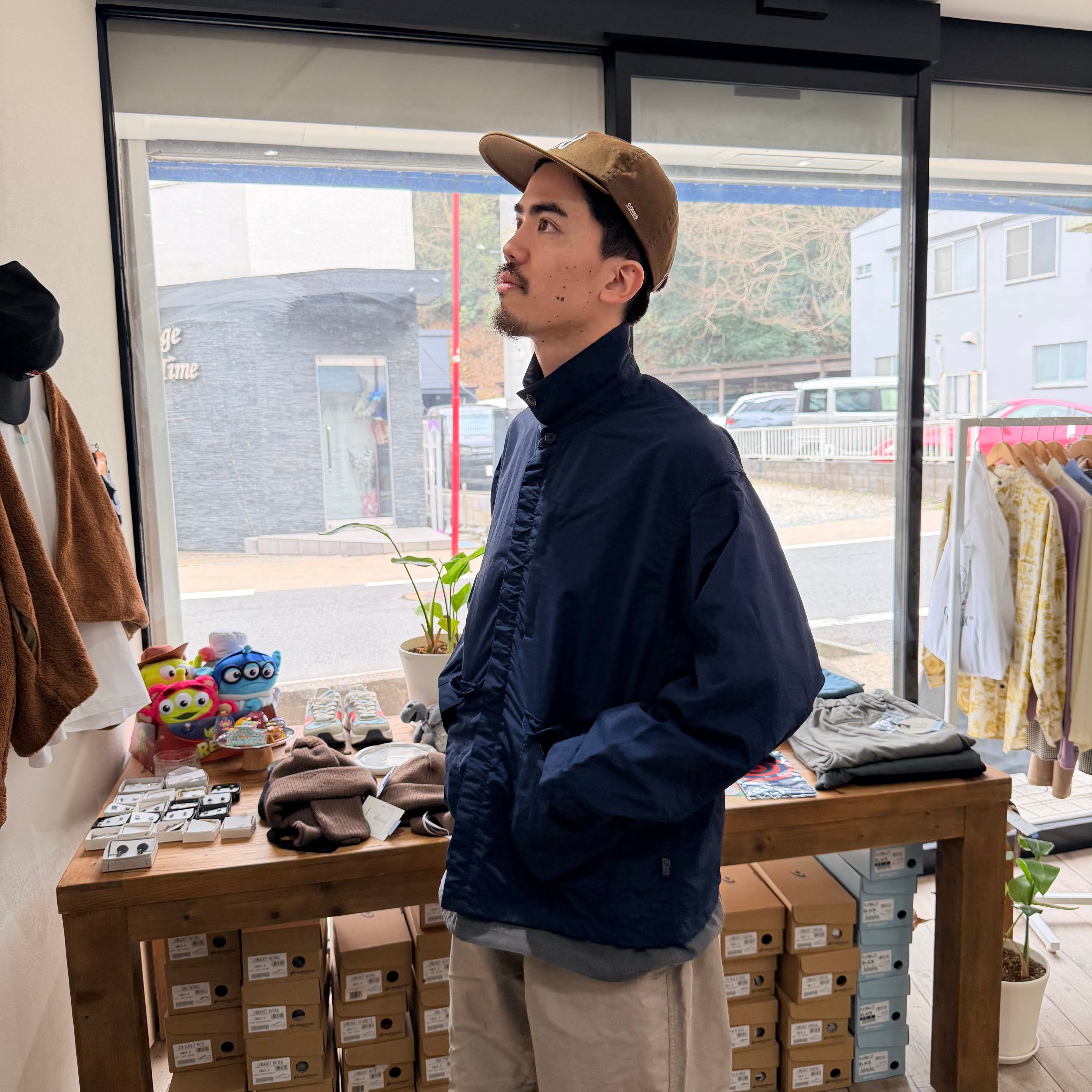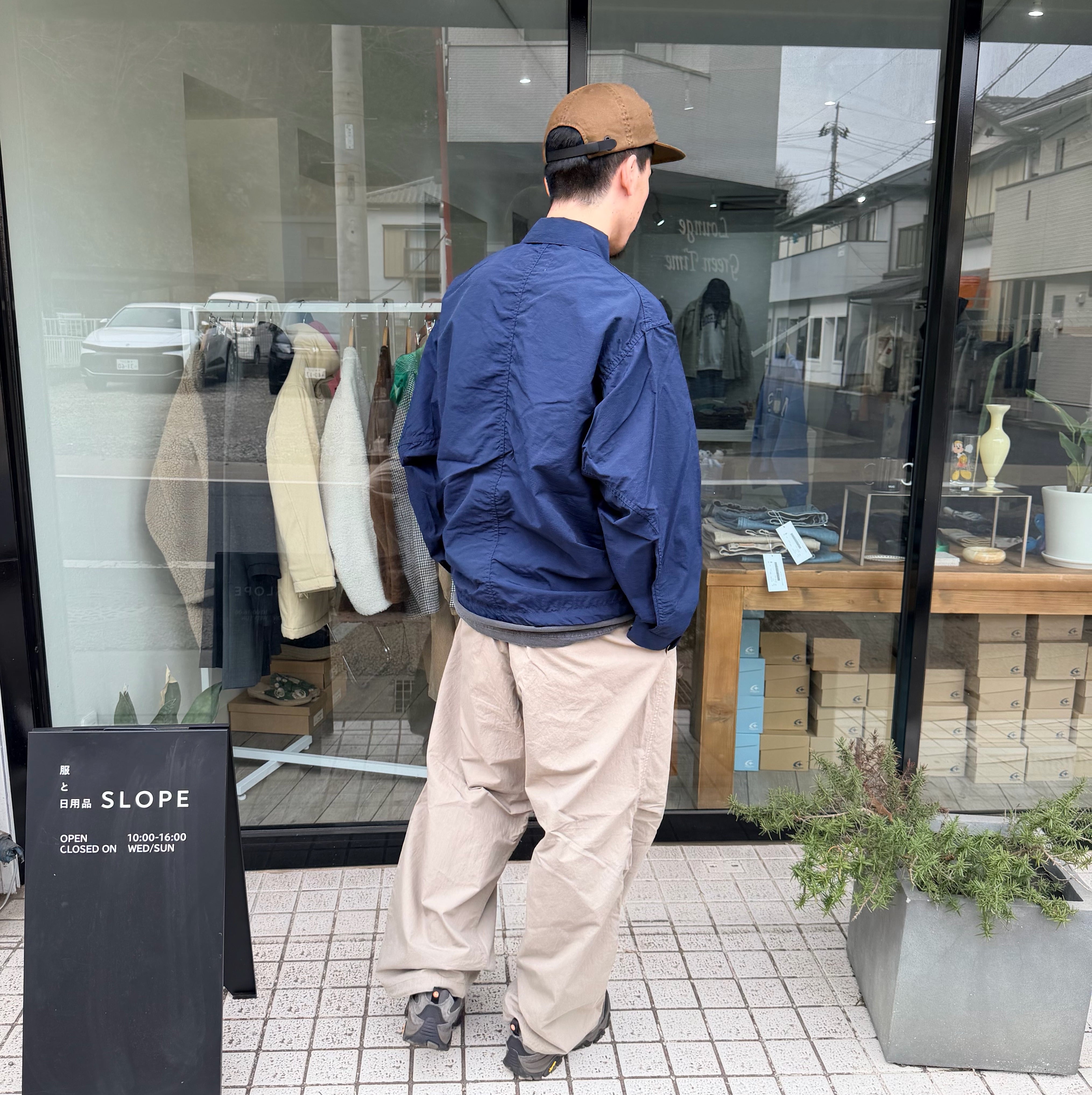 「その名の通り、大きくて軽いジャケット。春とはいえまだ冷え込む日も多い時は大きなジャケットが役に立つ。フーディーやシャツの上からガバっと羽織りあたたくなってきたらTシャツの上にサラッと羽織る。ちょっとした撥水加工もされているので、梅雨時にも大活躍間違いなし。裾も絞れたりファスナーポケットも3つ付いているので自転車乗りの方にもおすすめのジャケットが出来上がった。なんだかんだで発売から今年5年目を迎える鉄板アイテム。今年からMサイズが新たに登場しました。」