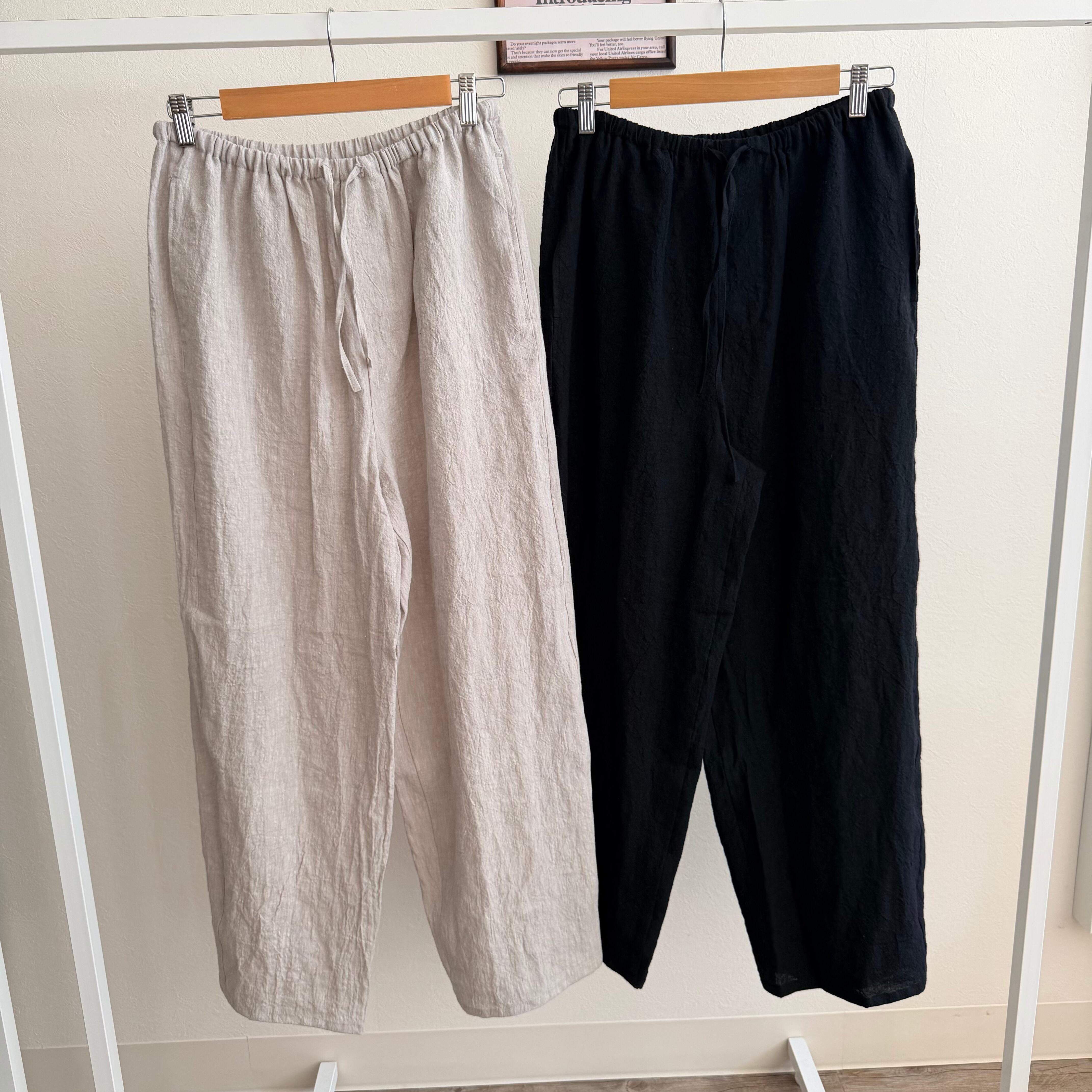 リネン・コットンの生地にワッシャー加工を施した、軽くて薄手な素材を使用したパジャマパンツです。